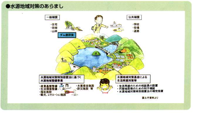 - 水源地域対策特別措置法や利根川・荒川水源地域対策基金による水源地域の生活再建や地域整備の促進