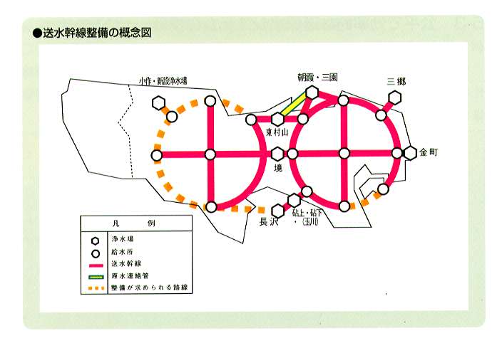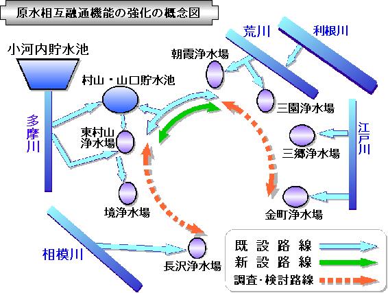 特に、多摩地区での水道需要の増加と、小作浄水場のバックアップ機能の不足を考慮した施設配置を実現する。