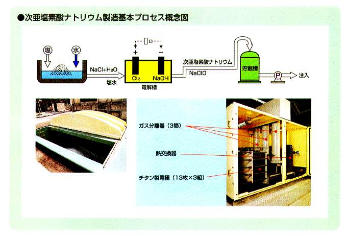 - 液体塩素から取扱いの容易な次亜塩素酸ナトリウムへの転換