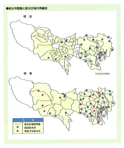 また、長時間にわたる大規模な事故時等においても、安定給水に大きな影響を与えないように施設能力を増強するとともに、多摩地区の小規模浄水施設を有効に活用していく。 - 将来の水道需要及び高低差等の地形特性を考慮し、浄水施設をバランスよく配置する。
