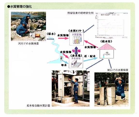 - また、給水過程での水質変化を的確に把握するための水質監視体制を整備し、得られた水質情報を浄水処理や水運用へフィードバックするシステムを強化する。
